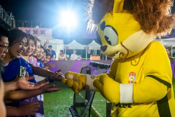 接洽青岛“足球城”底蕴与海洋特点,比赛遴选在极地海上足球场进行,让参与者在不雅赛之余,千里浸式体验“足球+文旅”的独到乐趣。赛事时刻,青岛西海岸足球俱乐部安然物“龙小飞”惊喜现身,与不雅众互动合影,焚烧现场敌视,劳动足球与业余足球的精熟接洽,不仅丰富了行为实践,也进步了到场球迷的体验感。