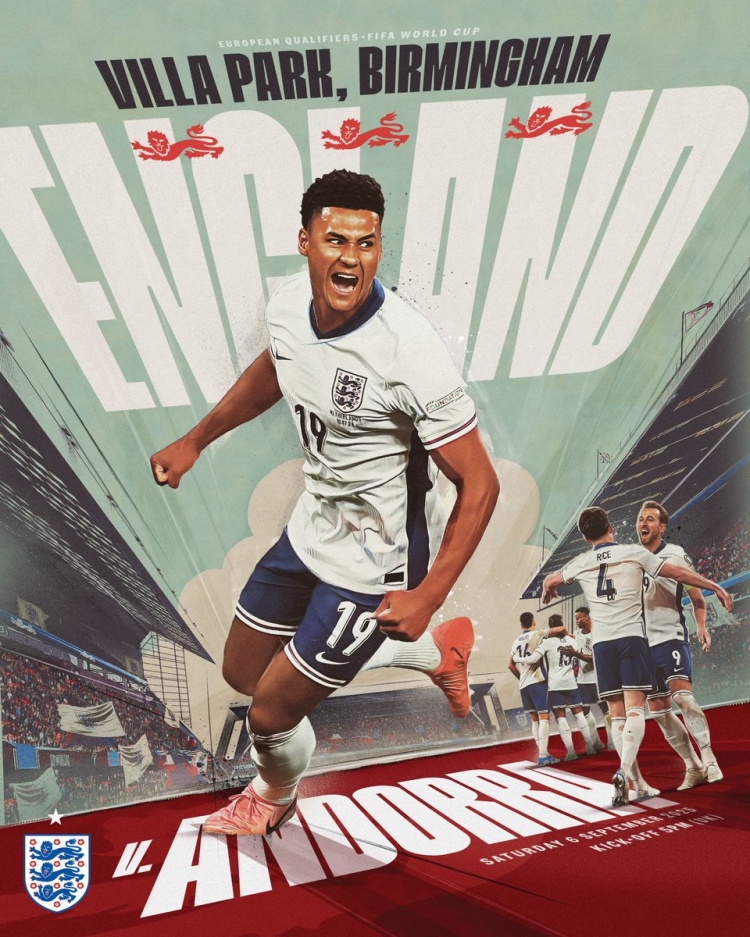 行将迎战安说念尔,英格兰队官方发布世初赛海报