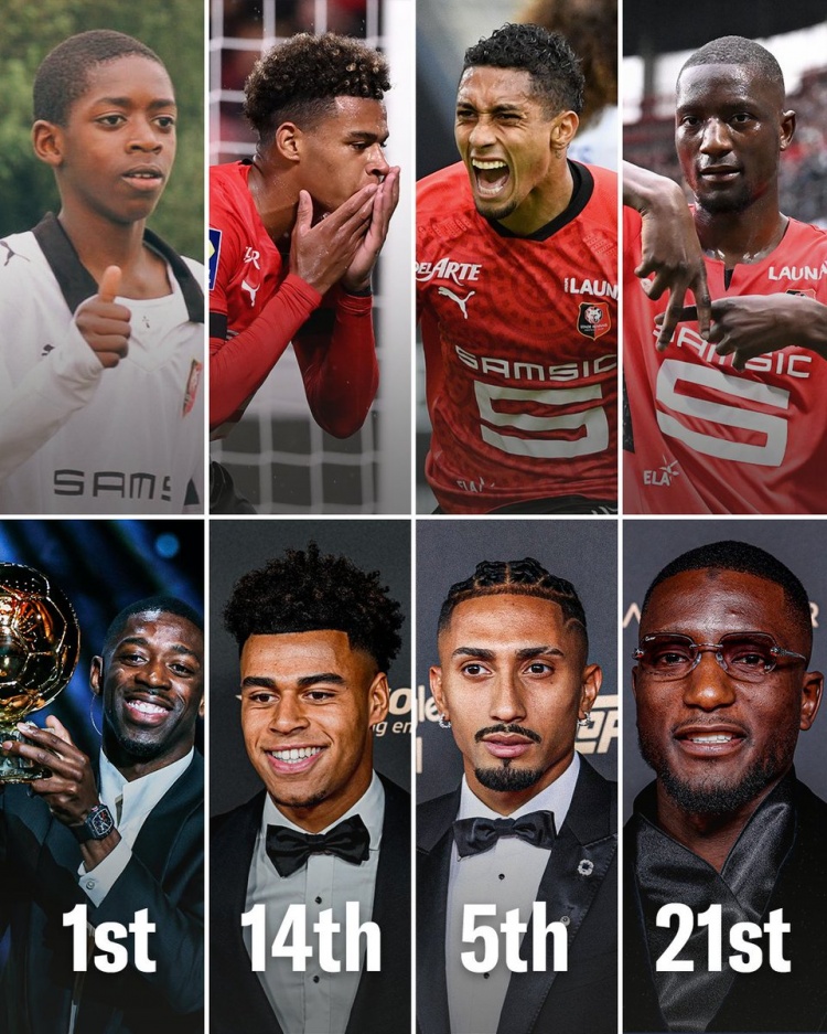 金球前30中曾在雷恩效率的球员:登贝莱、杜埃、拉菲尼亚、吉拉西