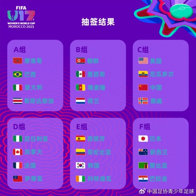 凭证赛程安排,中国U-17国度女子足球队将在拉巴特先对阵挪威队,再挑战好意思国队,临了对决厄瓜多尔队。