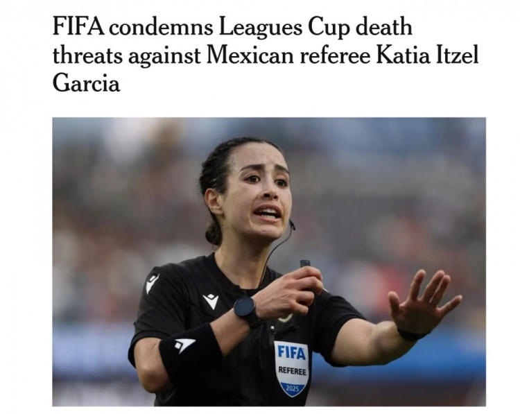 8月5日讯 据The Athletic报谈,外洋足联力挺墨西哥女裁判卡蒂亚-伊策尔-加西亚,激烈驳诘她收到的牺牲威迫。