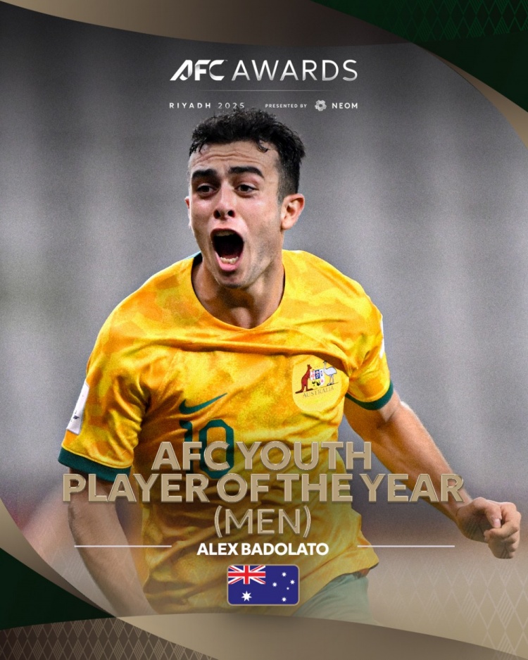 官方:澳大利亚中场巴多拉托当选亚足联年度最好后生球员