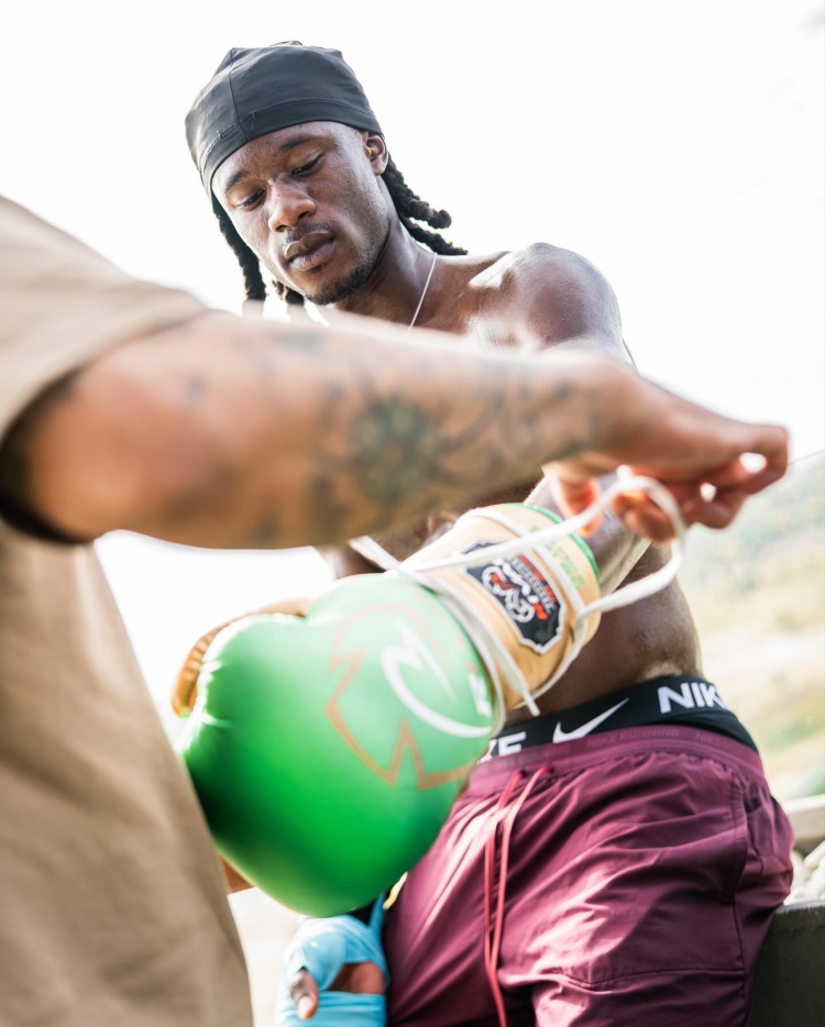 卡马文加社媒晒出业余手艺造就拳击的相片,并配上拳套的色调璀璨,球员的肌肉线条至极明显。