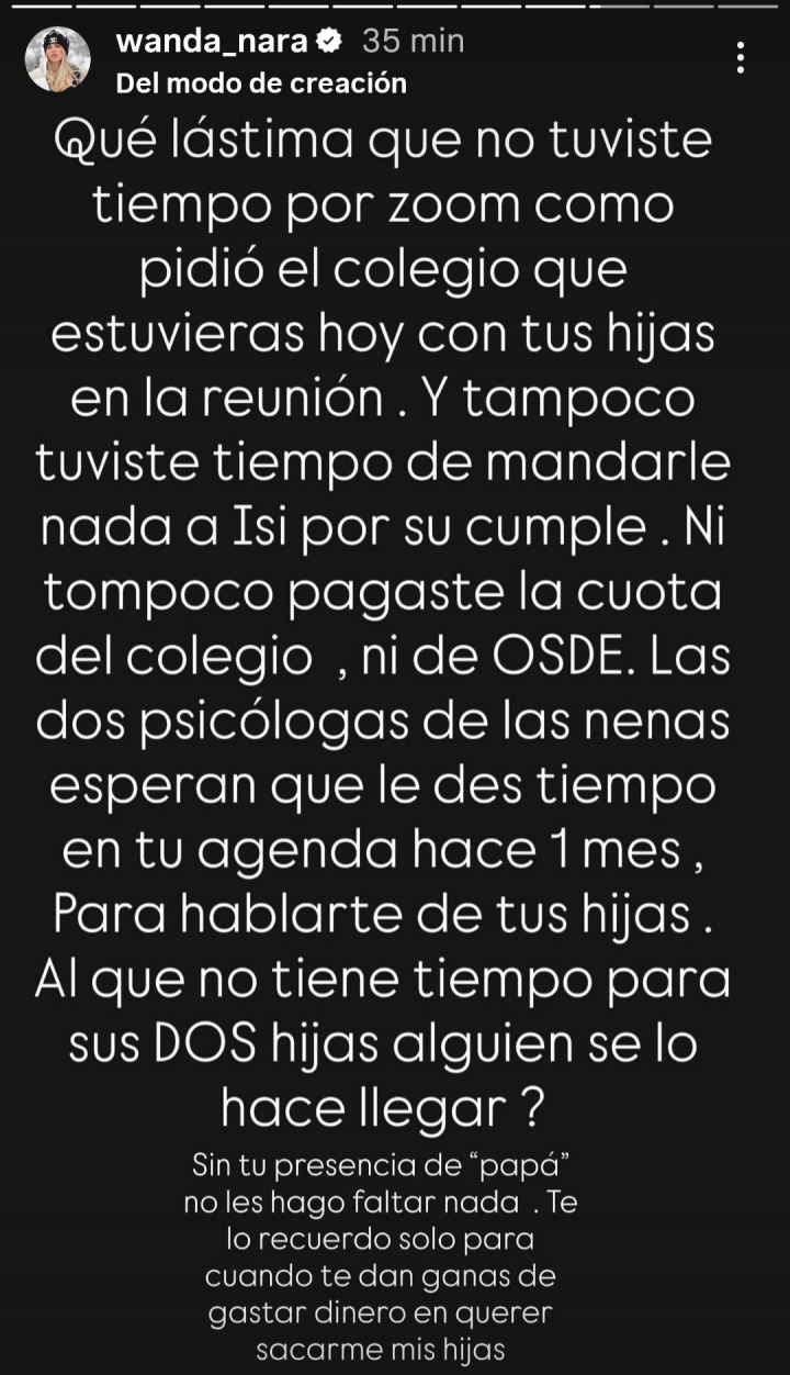 伊卡尔迪前妻旺达·娜拉联络更新两条社媒社媒,月旦伊卡尔迪对待孩子的手脚。