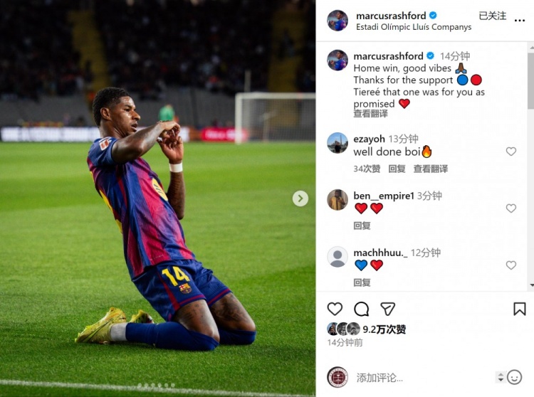 加盟巴萨以来6球7助!拉什福德晒照庆祝到手:感谢人人的接济