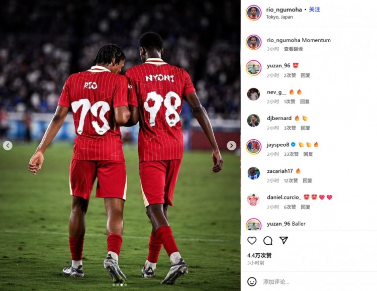 7月31日讯 利物浦在热身赛3-1打败横滨水手,16岁小将恩古莫哈一条龙破门,18岁的尼奥尼也赢得进球。两位小将也在赛后晒出合照。