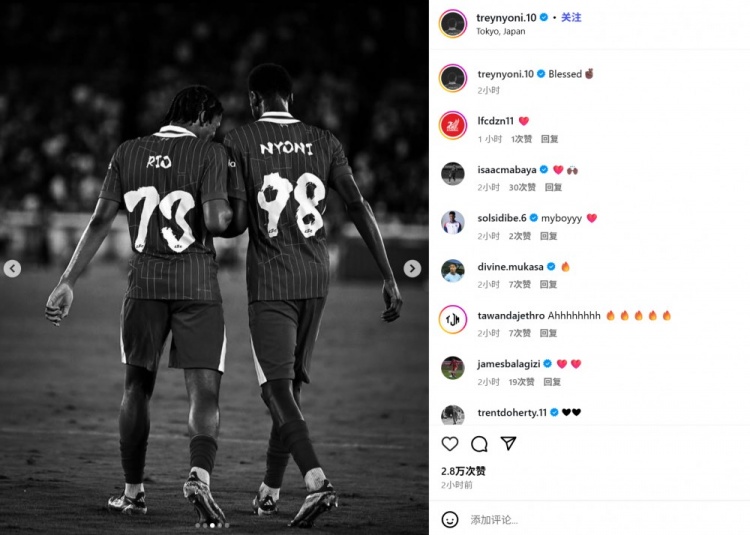 为利物浦同场破门!18岁尼奥尼和16岁恩古莫哈社媒都晒合照牵记