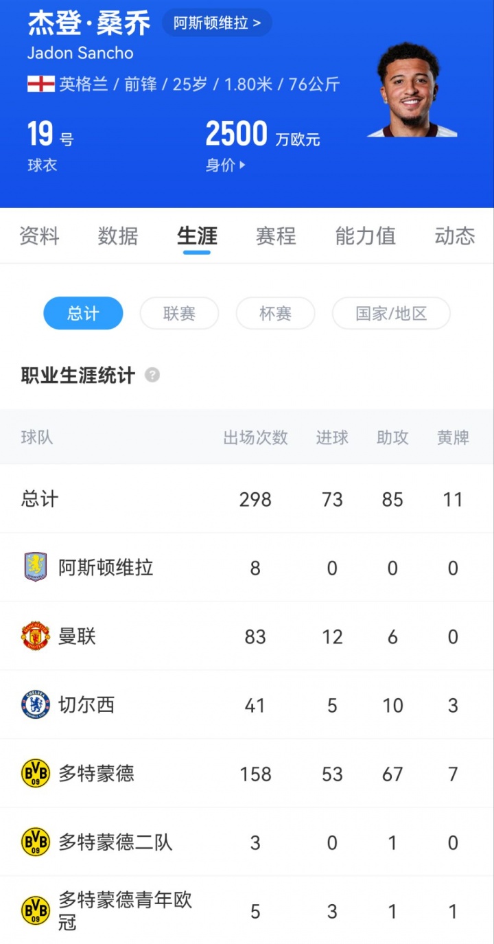 11月23日讯 《镜报》独家报说念称,现在被曼联外租至维拉的桑乔改日有望再度加盟多特,他们热衷于第3次签下他(2017年从曼城梯队买入、2024年冬窗租出),但需要球员进行大幅降薪。