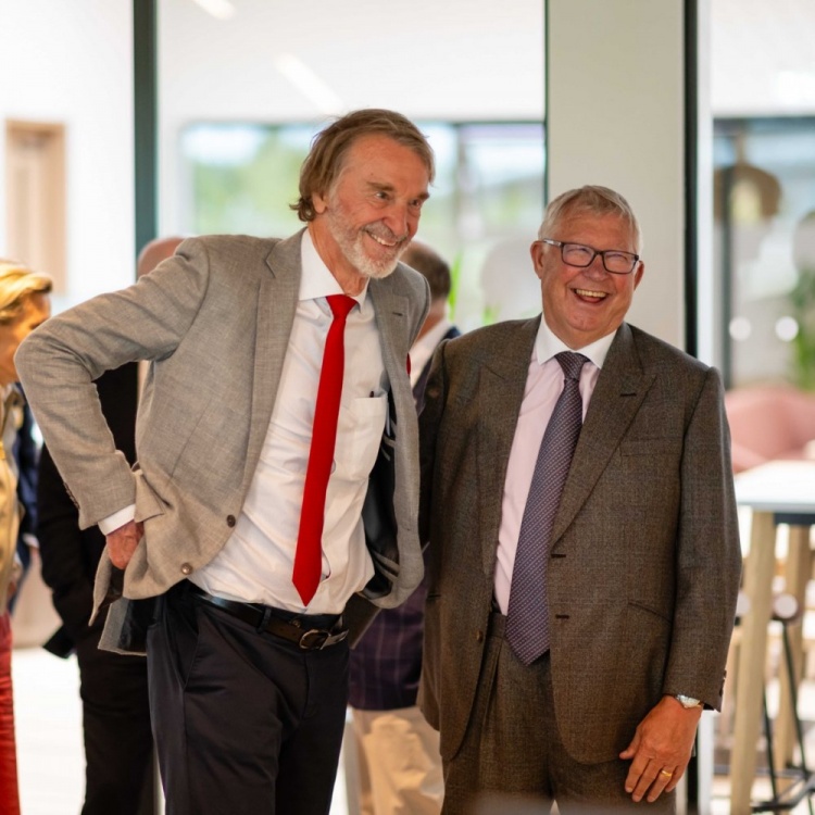卡灵顿基地创新,拉特克利夫为男足一线队程序剪彩,曼联功勋主帅弗格森也出席了庆典。