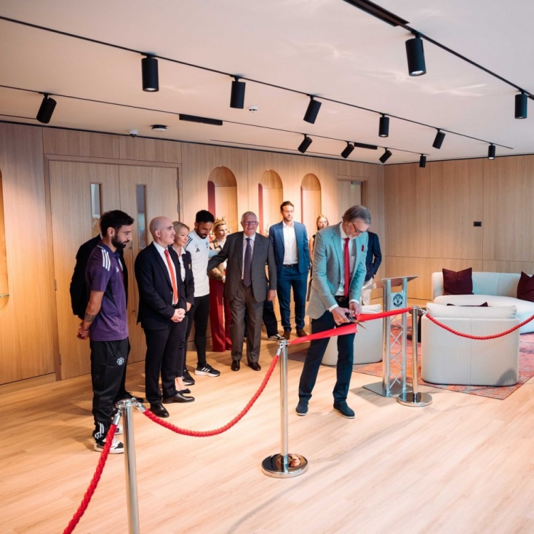 8月9日讯 曼联官方更新社媒动态,晒出拉特克利夫为卡灵顿基地男足一线队新程序剪彩的相片。