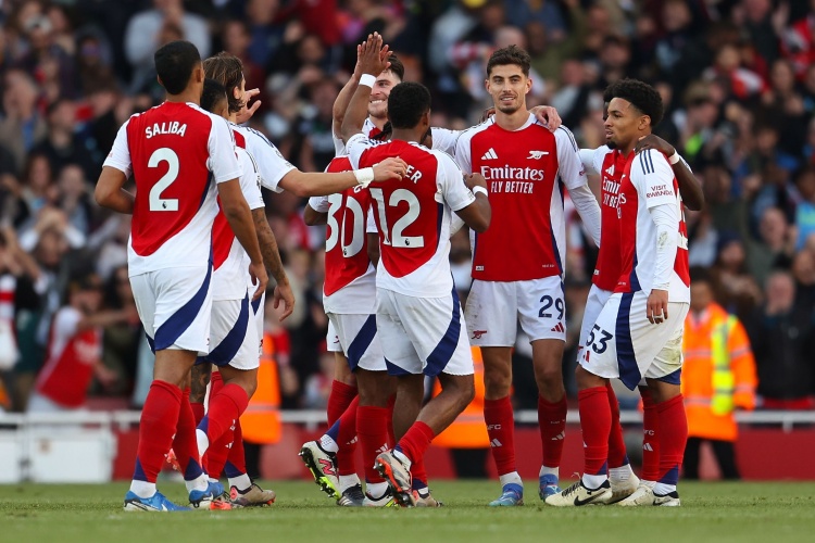 4-3-3阵型:拉亚、廷伯、萨利巴、加布里埃尔、斯凯利、厄德高、祖比门迪、赖斯、萨卡、约克雷斯、马丁内利