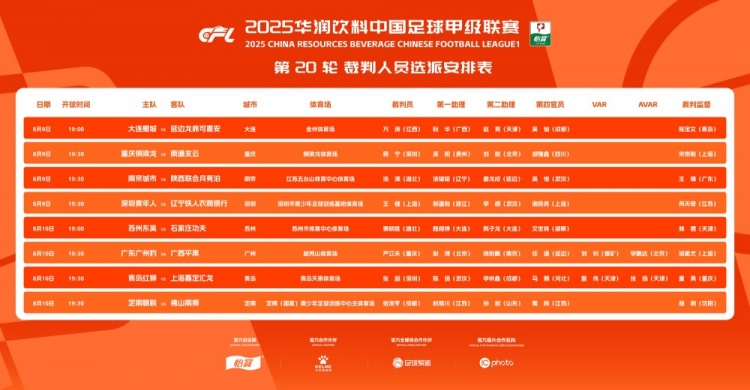 8月9日讯 中甲联赛官方公布了第20轮中甲评判员遴派名单,其中广东广州豹vs广西平果、青岛红狮vs上海嘉定汇龙这两场比赛将启用VAR。