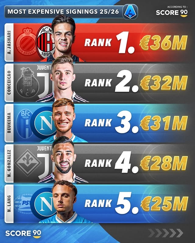 其中,意甲也曾有5个队伍滥用过亿,这亦然排在第二的数据(英超:11支队伍)。对比可知,意甲本赛季朝上来自公共合座上购买的数目素养。其中,上赛季的意甲冠军那不勒斯为了给孔蒂制造“安全感”极大险恶了条目,买入不少新援,实力升级有契机卫冕奖杯。