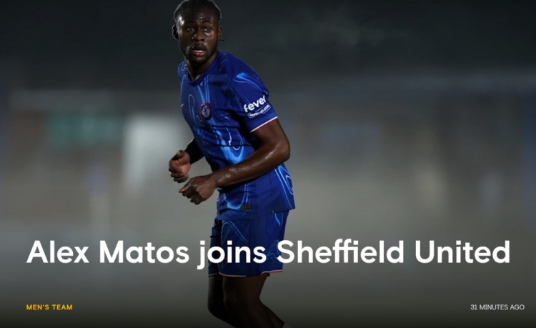 官方:切尔西20岁中场马托斯永久转会英冠谢菲联
