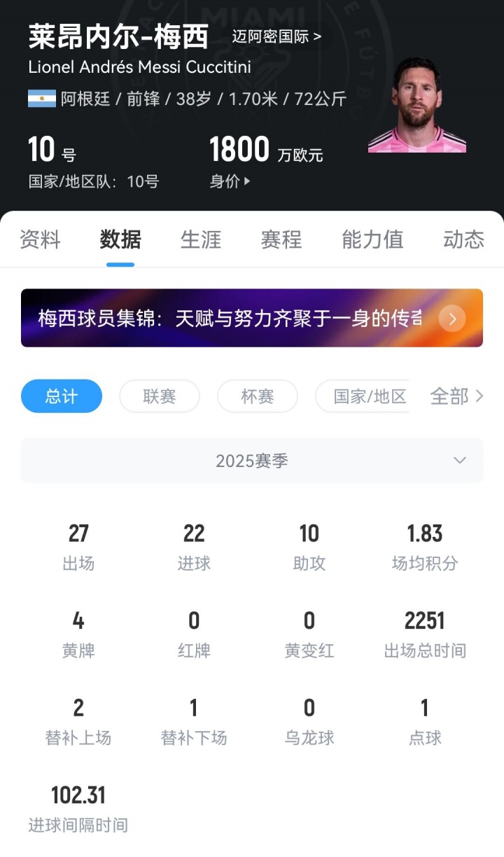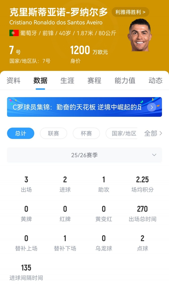 🌠33岁内马尔身价剩1100万欧 40岁C罗1200万欧38岁梅西1800万欧