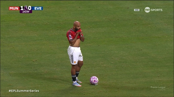姆贝莫在季前赛代表曼联献艺首秀,比赛中他被镜头拍到掀翻球衣披露上半身,球迷也对他的体格发表了热议。