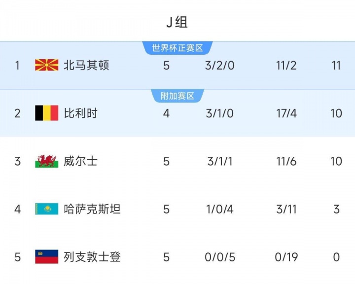 现时比利时排行J组第2,球队少赛1轮逾期榜首北马其顿1分,比利时的1自制好等于本年6月1-1打平北马其顿。比利时黄金一代完了之后,球队战绩逐步下滑,当今的天下排行依然跌至第8。