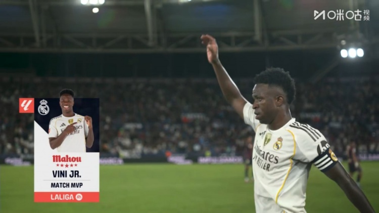 本场比赛维尼修斯传射立功,7射5正,3次关键传球,7次过东说念主4次到手,赛后他也当选西甲官方全场最好球员。