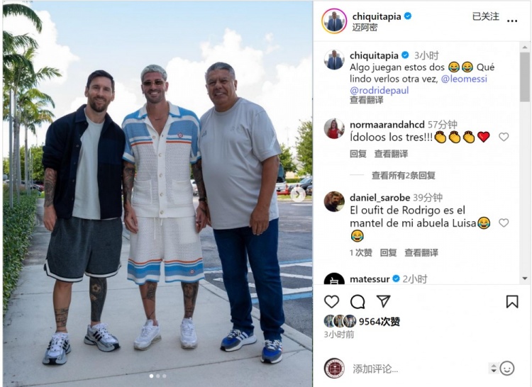 塔皮亚社媒晒出与梅西、德保罗的合照,捉弄:“这两个家伙在搞什么神志😂😂很得志再次见到你们。”