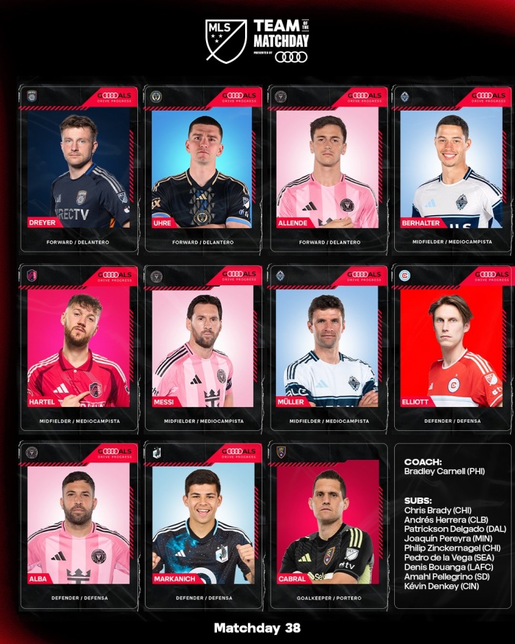 好意思职联上轮最好声威:梅西、穆勒、阿尔巴、阿连德在列