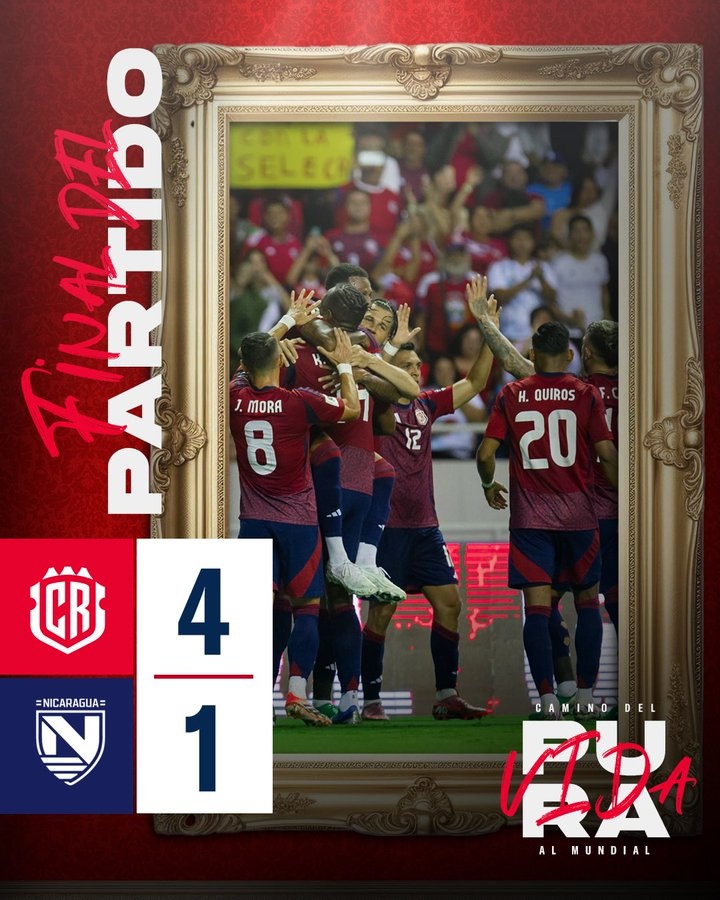 世初赛哥斯达黎加主场4-1打败尼加拉瓜,排行小组第二位