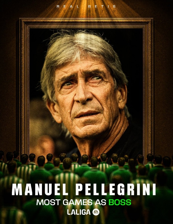 佩莱格里尼握教贝蒂斯出战第199场西甲,成为队史主帅第一东说念主