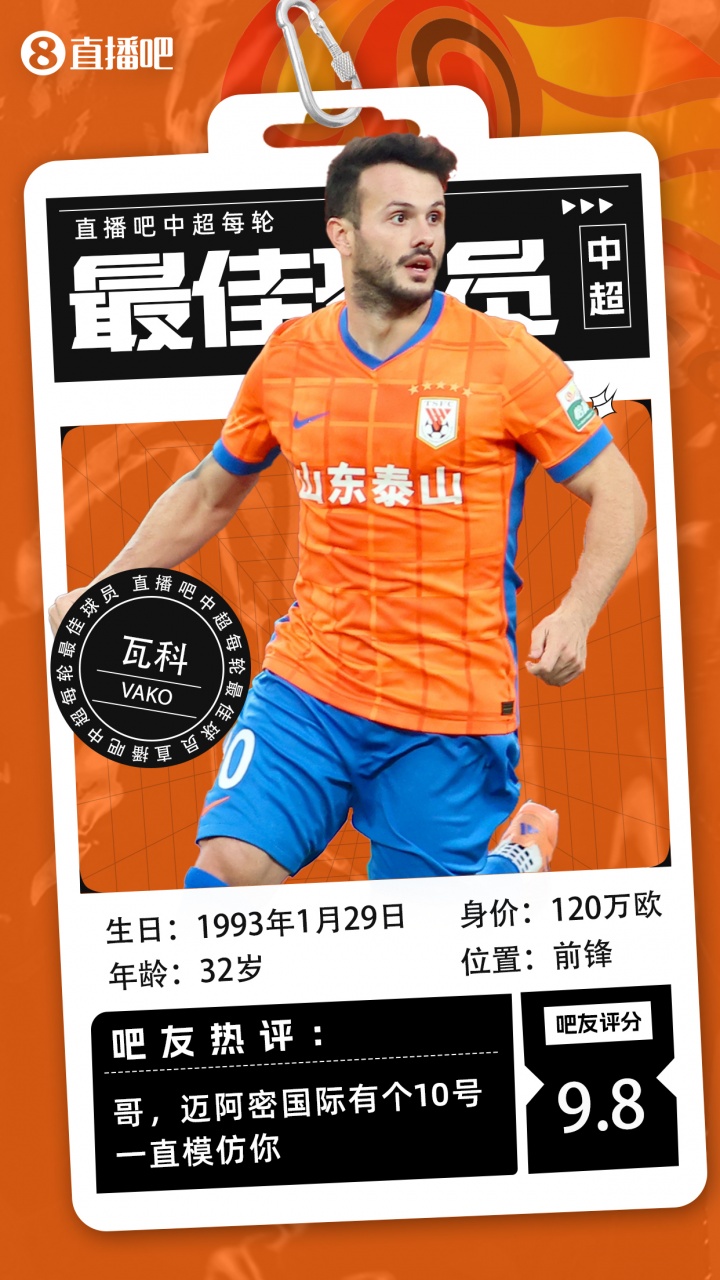 瓦科瓦科五子收用!卡扎伊什维利第5次当选【中超最好】