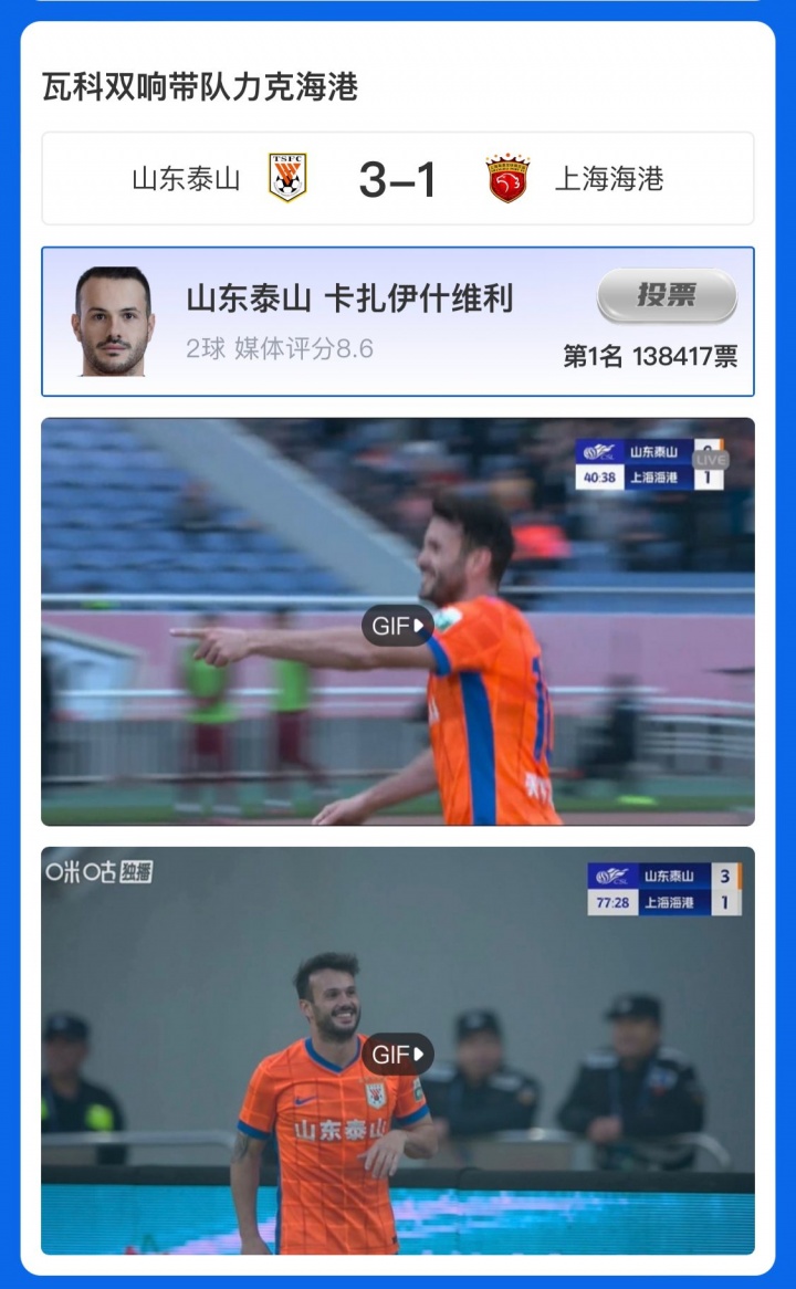 【】中超第28轮最好评比成果出炉,卡扎伊什维利第五次当选最好!在与上海海港的较量中,卡扎伊什维利梅开二度,攻入联赛第24球,匡助山东泰山3-1打败上海海港,捍卫大球场,领跑弓手榜!
