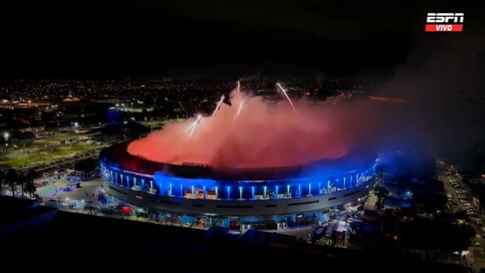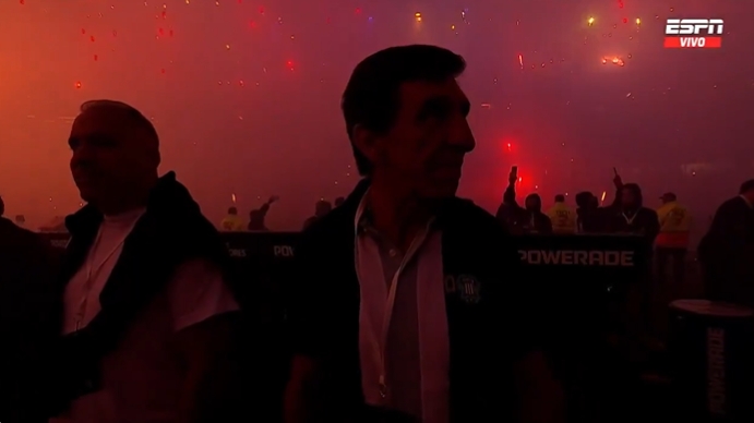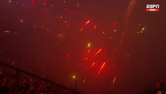 次回合,竞技队的主场氛围让全宇宙为之讴歌。尽管本场比赛最终比分是0-0,可是总统庇隆球场超燃的画面,硝烟敷裕堪比干戈,能见度不及5m,极其触动。