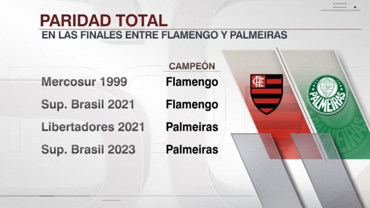 据ESPN统计,帕尔梅拉斯、弗拉门戈将第五次在决赛中重逢,此前两队各胜2场。