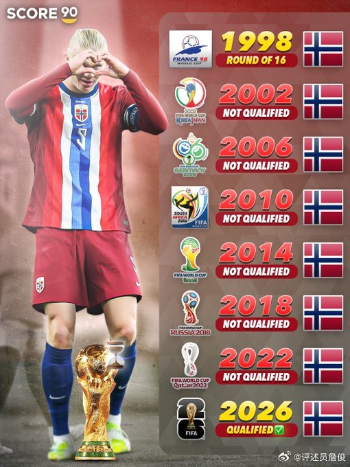 詹俊:哈兰德和挪威距离重返天下杯一步之遥,会成好意思加墨的黑马吗