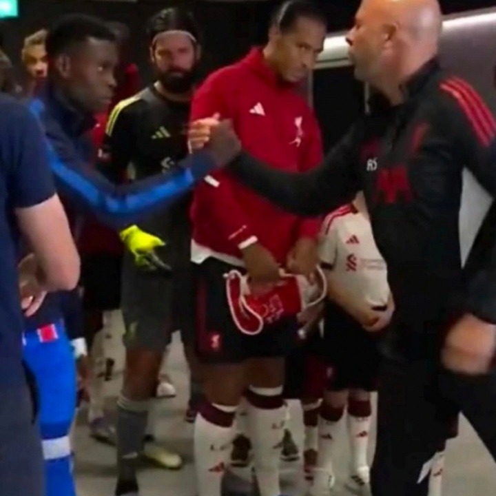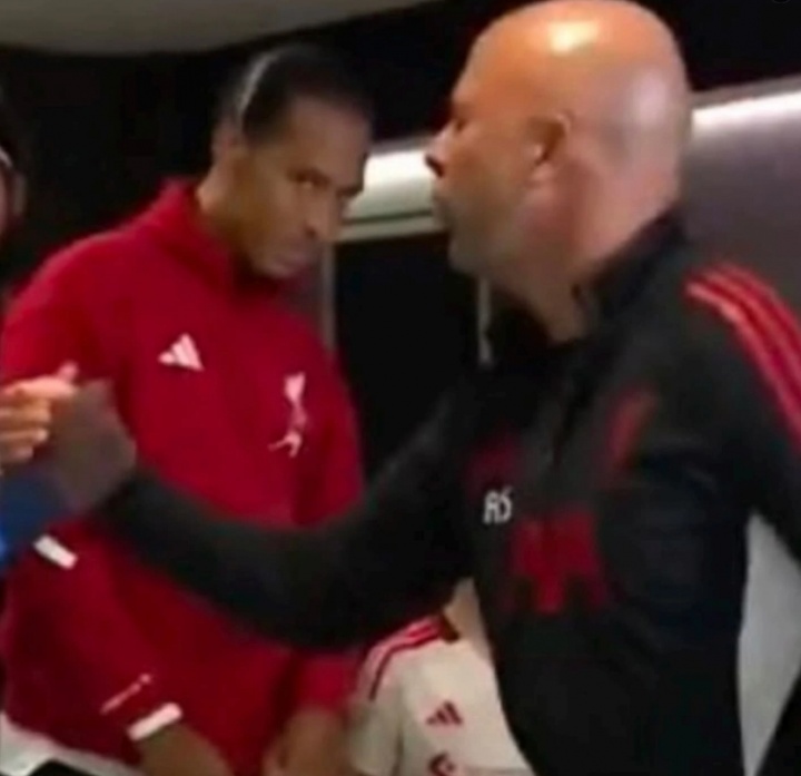 格伊赛前与斯洛特持手,范迪克这小眼力😂