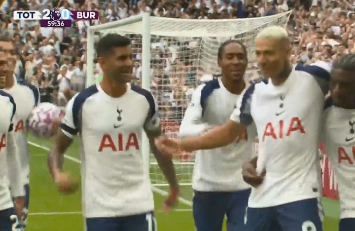 第60分钟,库杜斯右路传中助攻双响,理查利森中路侧勾破门梅开二度,热刺2-0伯恩利。