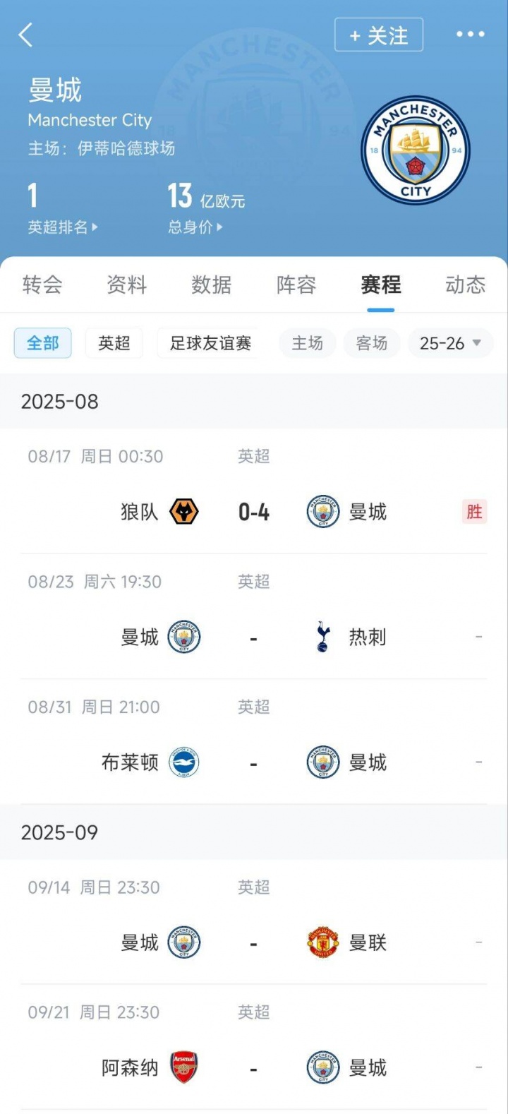 看成夺冠大热点之一,曼城在第1轮就启动领跑英超。可是接下来4轮球队将濒临严峻的磨练,他们将连络对阵热刺、布莱顿、曼联和阿森纳。