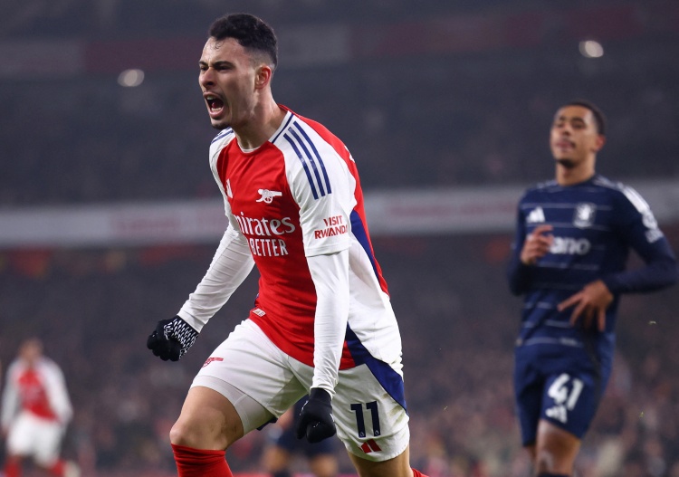 阿森纳首发:1-拉亚、2-萨利巴、6-加布里埃尔、12-廷伯、33-卡拉菲奥里、23-梅里诺、41-赖斯、36-苏维门迪、11-马丁内利、20-马杜埃凯、14-约克雷斯