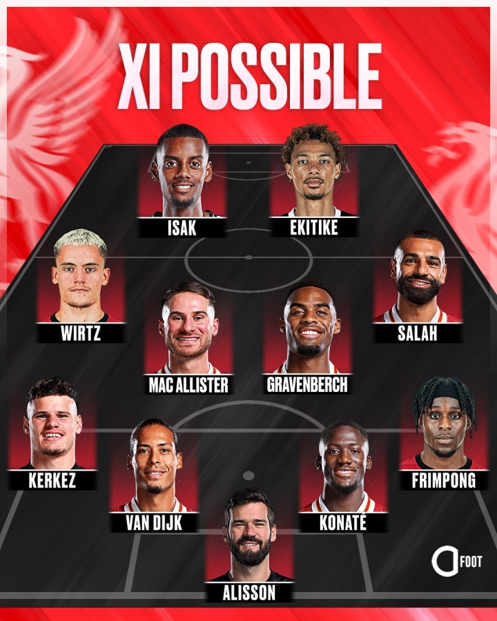 恐怖!外媒料到利物浦首发:伊萨克+埃基蒂克 维尔茨、萨拉赫在列