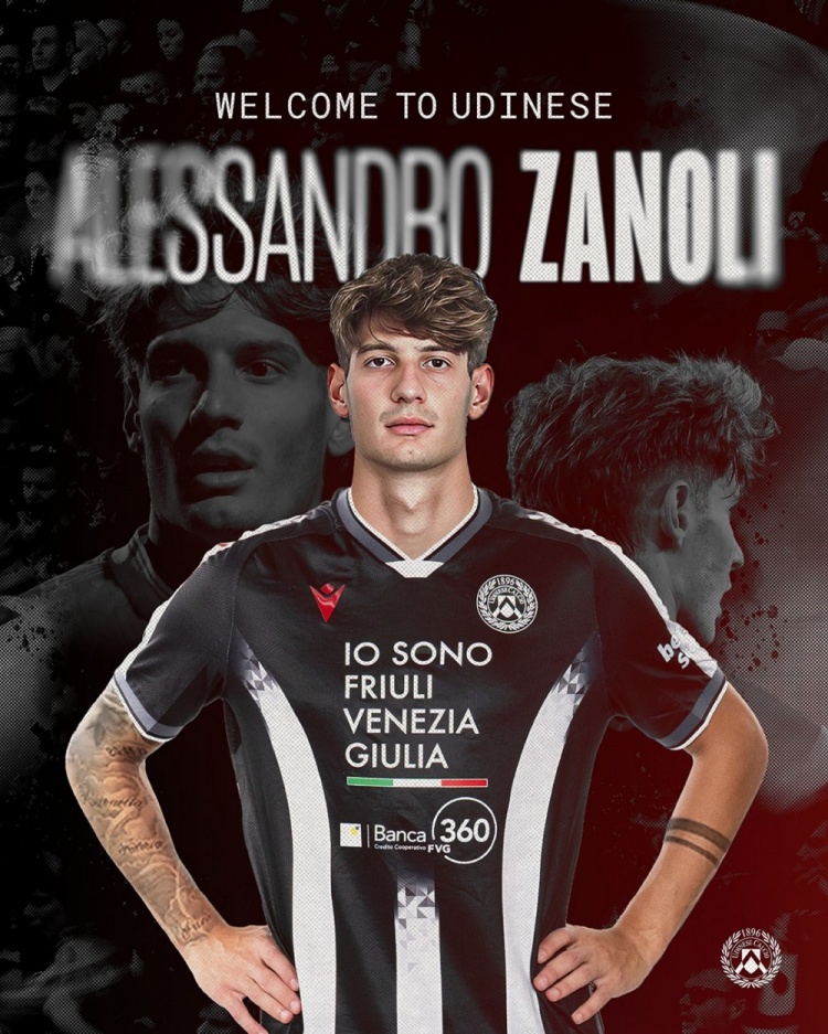 官方:24岁后卫扎诺利慎重加盟乌迪内斯,形势为租出+强制买断