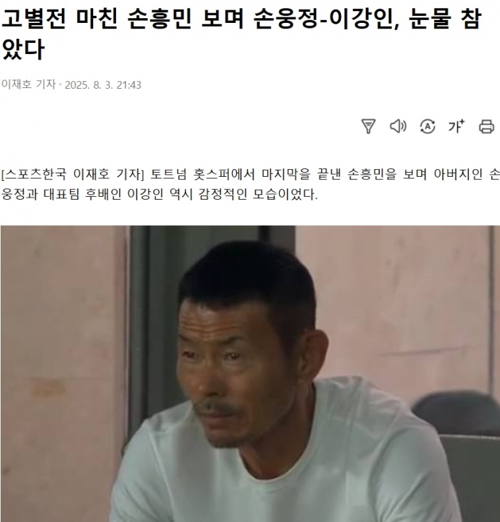 韩媒:父亲孙雄正现场不雅看孙兴慜热刺告别战,强忍泪水