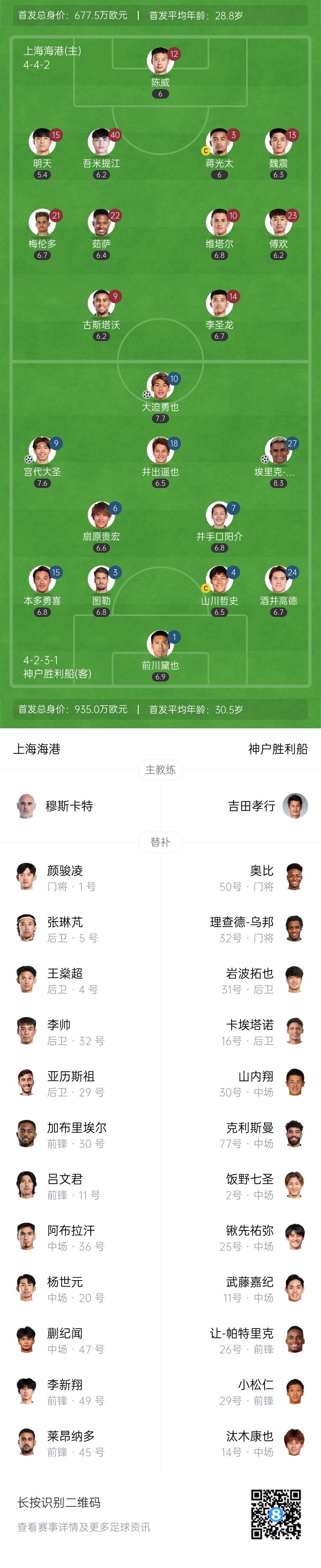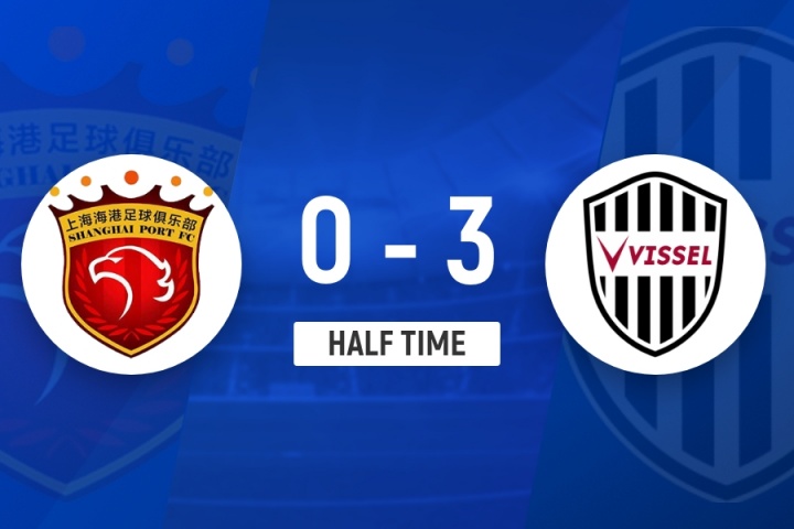 半场-海港暂0-3神户 神户外助埃里克传射 古斯塔沃、李圣龙失良机