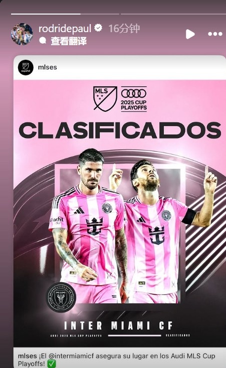 锁定季后赛,迈阿密海外中场德保罗晒海报缅念念这一技巧