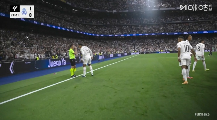 10月26日讯 西甲第10轮,皇马vs巴萨,比赛第22分钟,贝林厄姆直塞,姆巴佩单刀破门,进球后贝林厄姆找到边裁说了些什么,边裁则复兴了“🤏”手势。