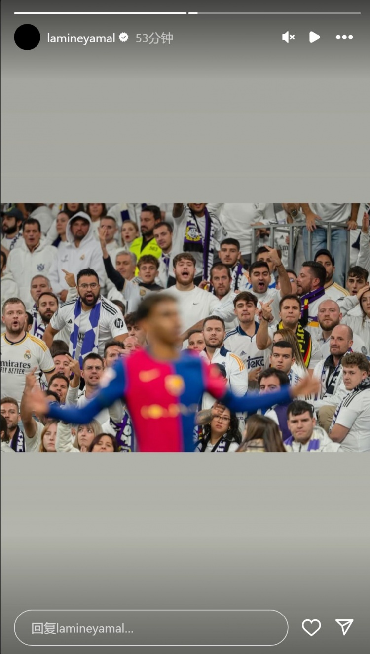 亚马尔的言论让皇马球迷感到震怒,甚而为了反抗皇马球迷,还在个东说念主外交媒体晒出4-0皇马遭球迷狂嘘像片!