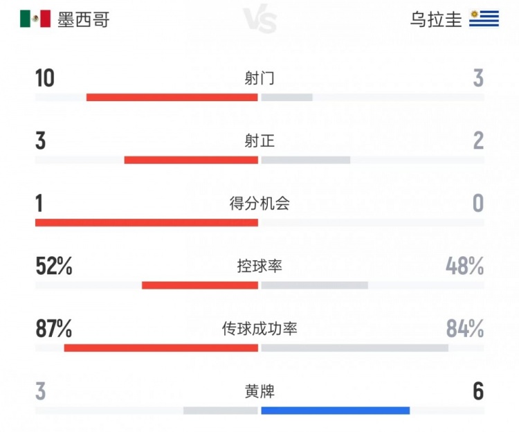 此役墨西哥射门10比3占据上风,不外两队皆莫得赢得进球,最终0-0执手言和。