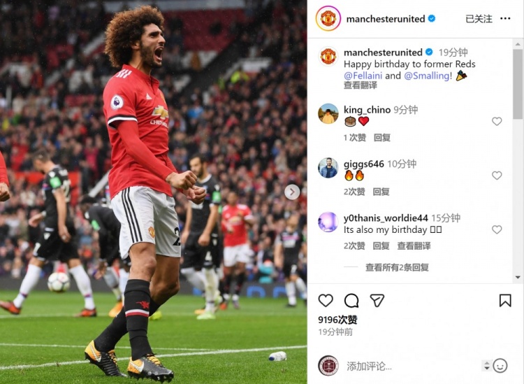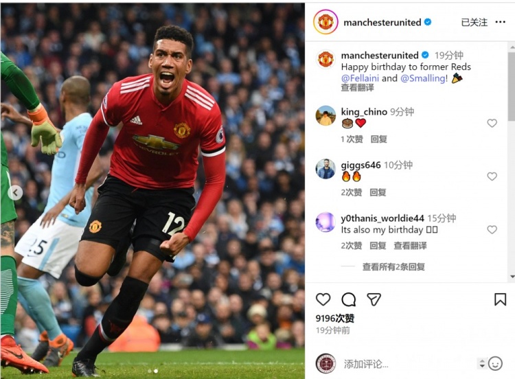 生辰闲散!曼联官方社媒为费莱尼、斯莫林庆生