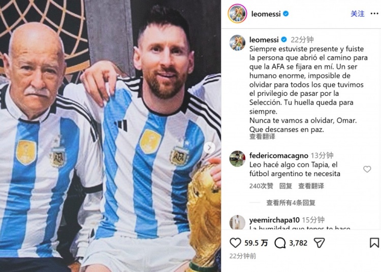 阿根廷队功勋索托死字!梅西社媒吊唁:是你让阿根廷足协征召了我