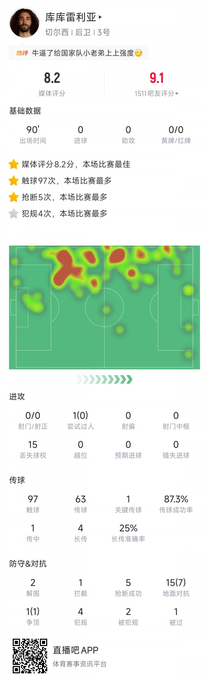 这一战库库雷利亚孝顺5次抢断2突围1阻碍,16次抗争8次得手,他也得手当选欧冠官方评比出的本场比赛最好球员。切尔西的首粒进球便是来自他的传中盘算推算造乌龙,赛后库库雷利亚的评分亦然最高。