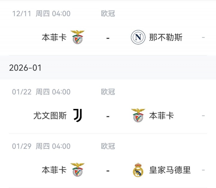 在临了的3轮比赛中,本菲卡的敌手仍是很雄伟,他们要先后对那不勒斯、尤文图斯和皇马,出线难度飙升。
