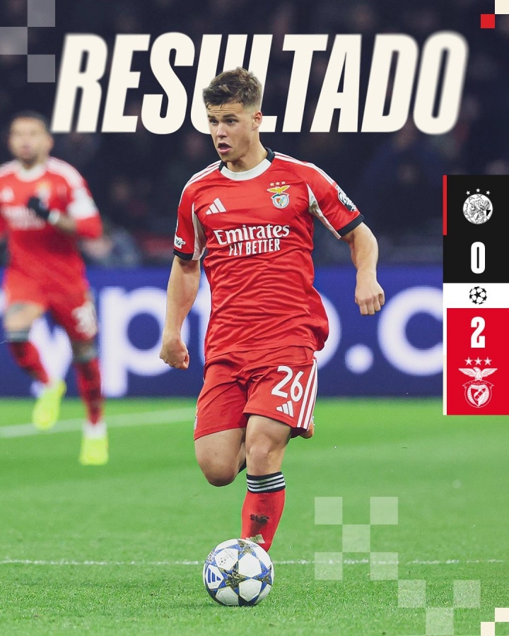 11月26日讯 凌晨欧冠联赛阶段,本菲卡客场2-0慑服阿贾克斯,终于获取本赛季欧冠首胜。