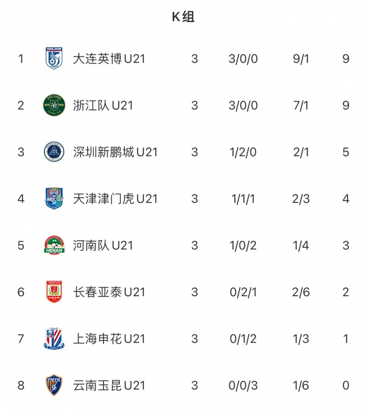 11月28日讯 U21联赛决赛阶段K组第3轮,19岁刘诚宇驰援申花U21队,但申花U21队0-1遭到河南U21绝杀,三轮战罢1平2负位列K组倒数第二。
