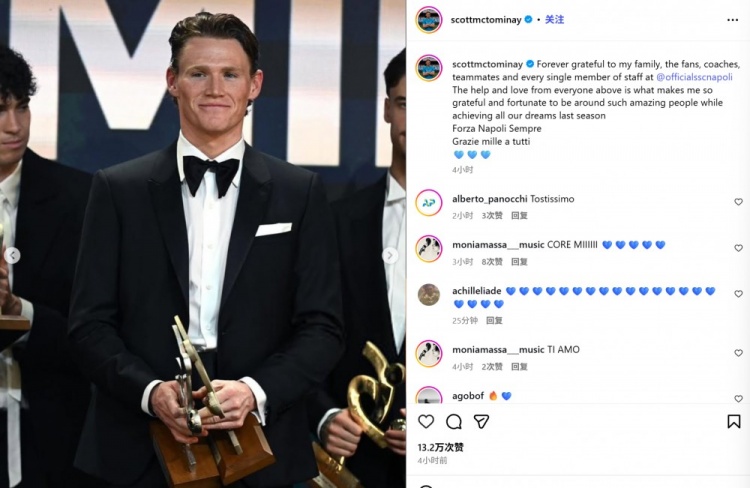 他也在本日通过社媒晒出我方领取奖杯的像片,并配文:“遥远戴德我的家东谈主、球迷、诠释、队友以及那不勒斯俱乐部的每一位职责主谈主员。”